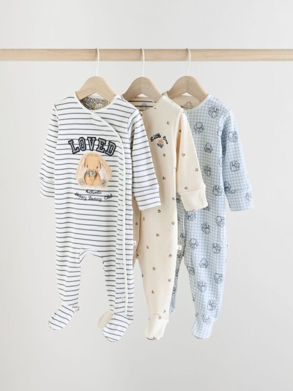 Next Blue/White Bunny 3 Pack Baby Sleepsuits