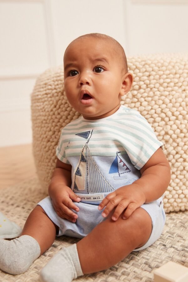 MATALAN 5 Piece Baby Blue Boat Sleepsuit & Bodysuit Set