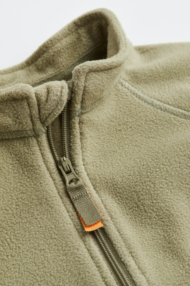 Set in soft fleece with elasticated trims that can be worn as it is or as a thermal mid layer. Jacket with a stand-up collar, zip down the front with an anti-chafe chin guard and long, raglan sleeves to minimise the risk of friction from the seams. Trousers with soft elastication at the waist.