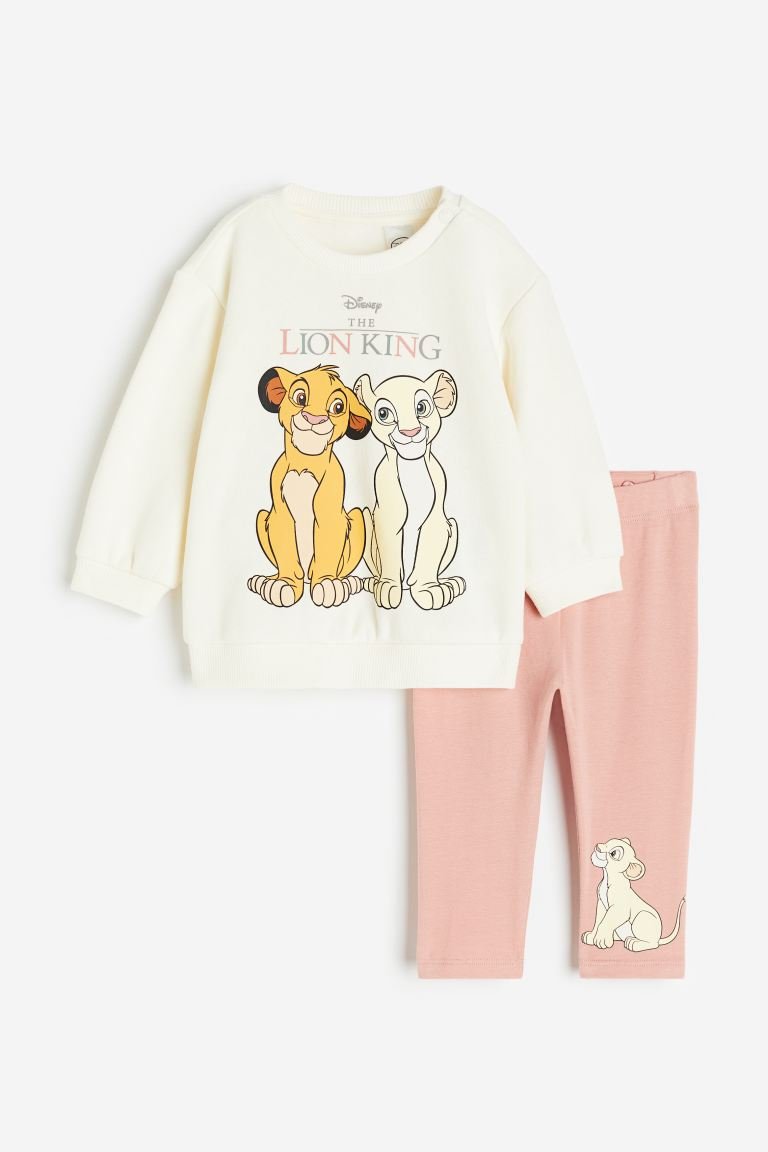 H&M – 2-piece Printed Cotton Set Powder pink/The Lion King