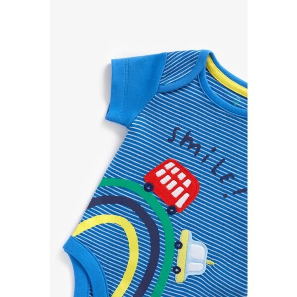 Short-sleeved bodysuits in printed, supersoft cotton jersey with lapped shoulders and press-studs at the crotch.