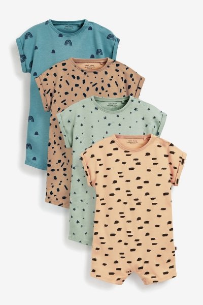Short-sleeved, wrapover bodysuits in soft, organic cotton jersey with press-studs down one side and at the crotch.