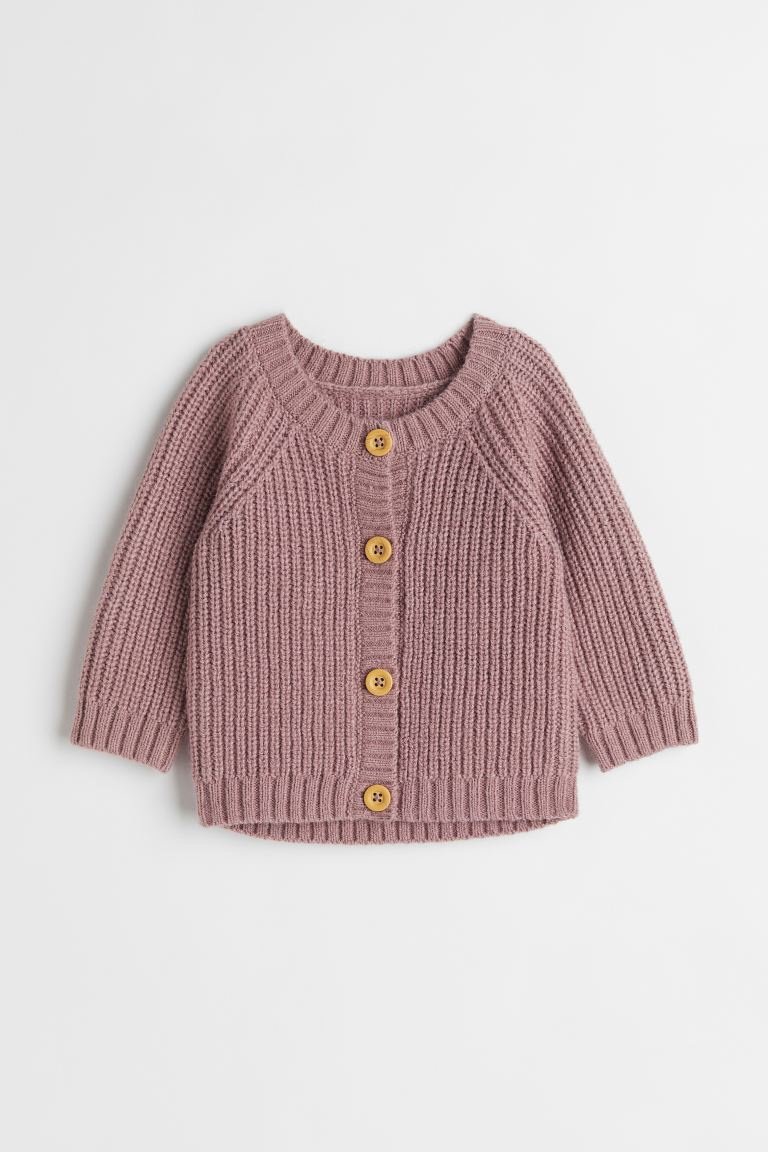 H&M – Rib-knit cardigan dusky pink
