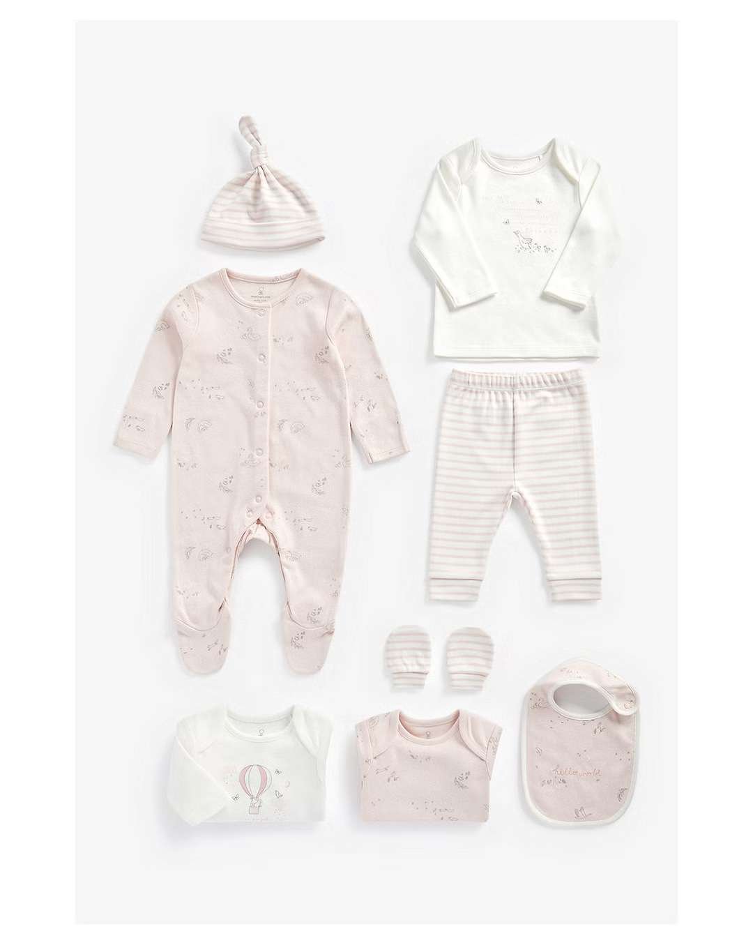 Mothercare – 8 Piece Set Printed And Striped – Pink