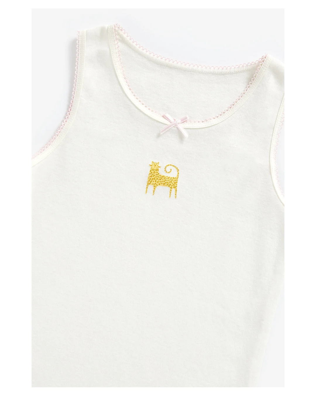 Pretty pink and classic white vests with lovely leopard characters to add a layer of warmth under every outfit