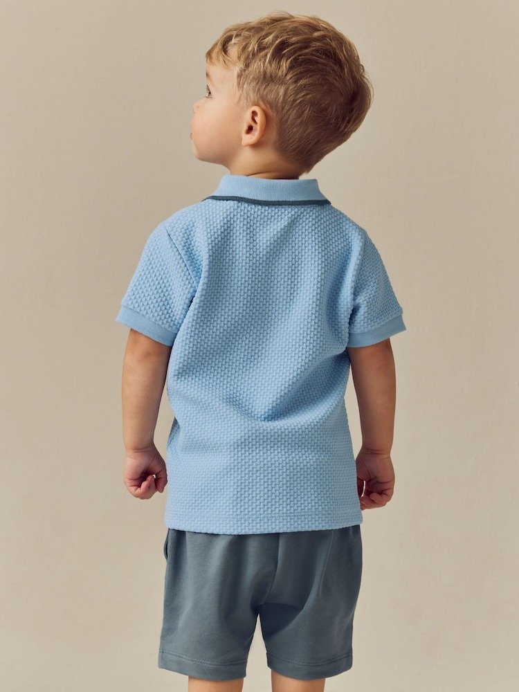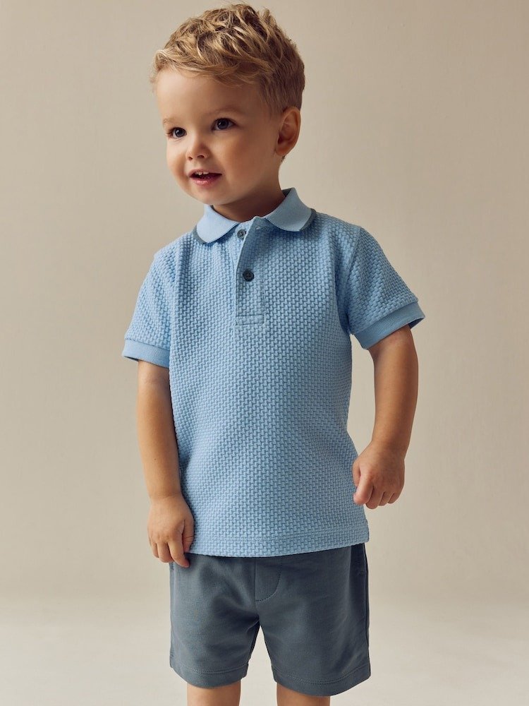 Next Blue/Navy Short Sleeve Textured Polo Shirt and Shorts Set