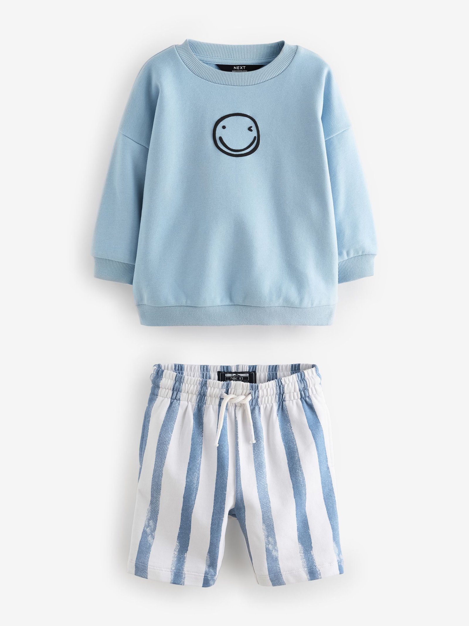 Next – Blue Stripe 100% Cotton Crew Neck Sweatshirt and Shorts Set