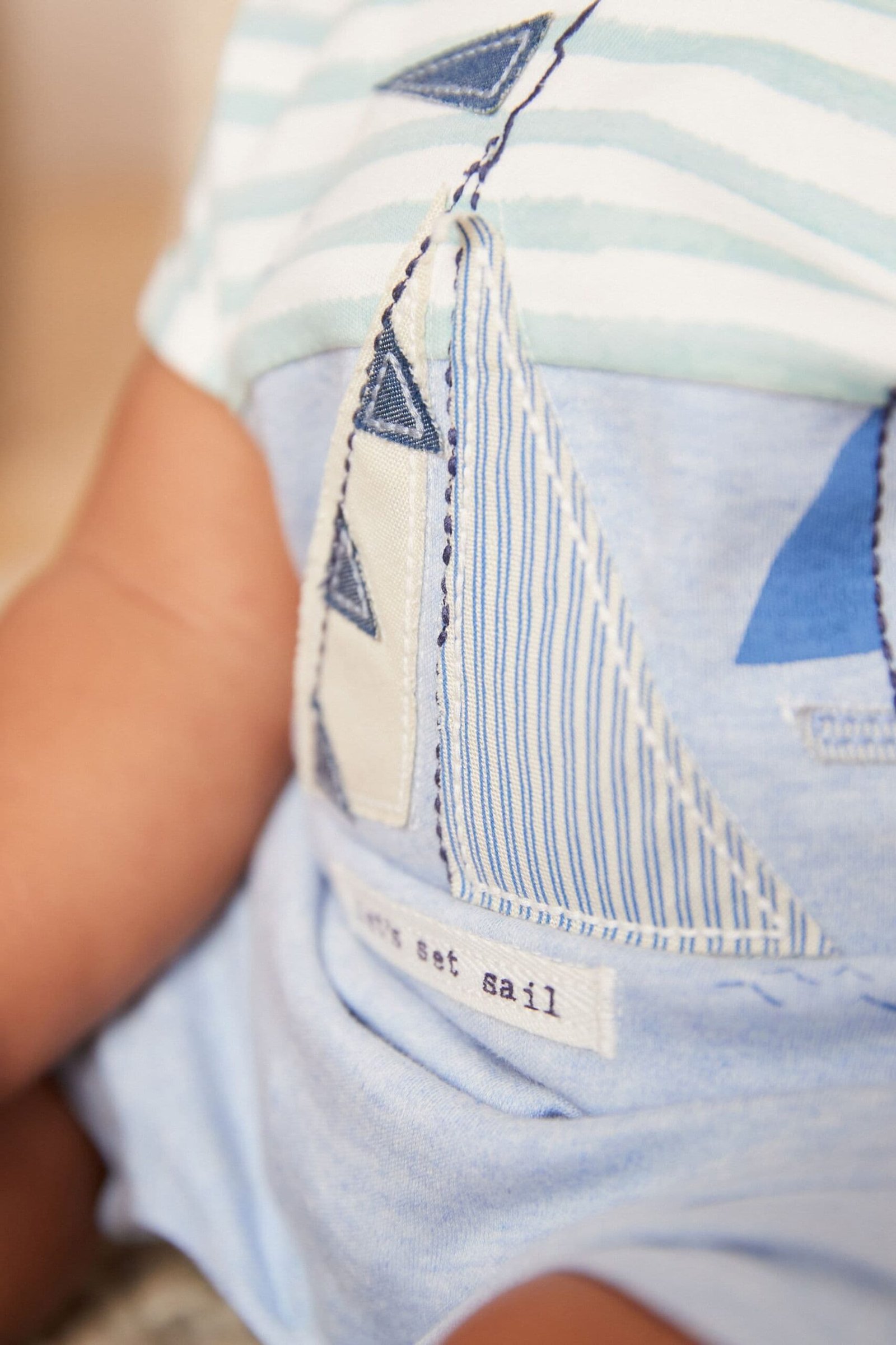 Next – Blue/White Boat Baby Rompers 3 Pack