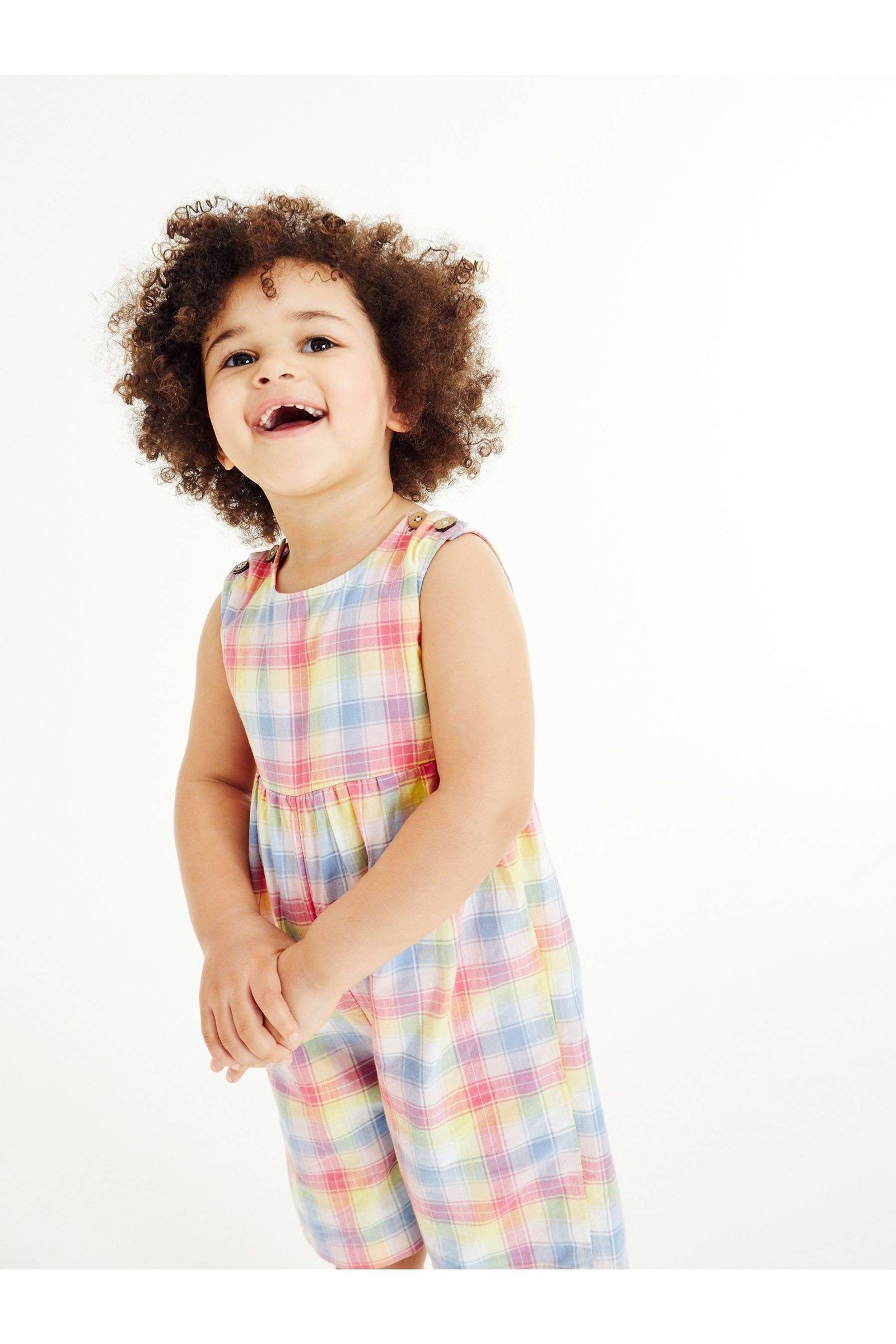 This cotton playsuit is designed with an all-over multi-coloured check print. With a wide leg style, this dungaree is has button fastenings at the shoulder.