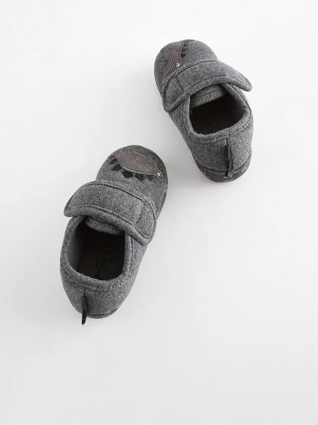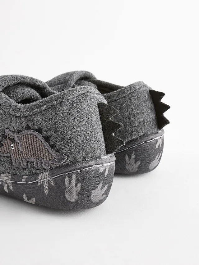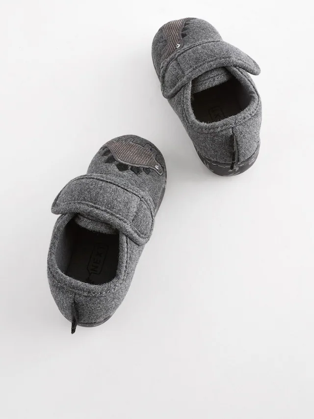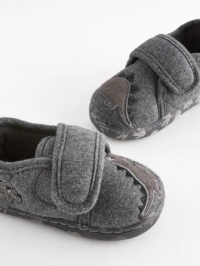 Next Grey Dino Touch Fastening Cupsole Slippers