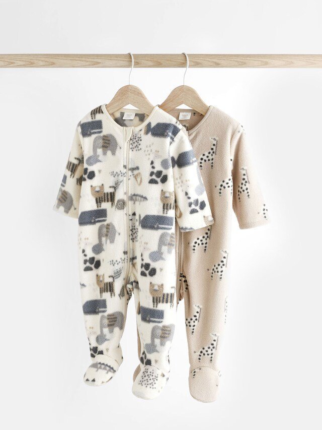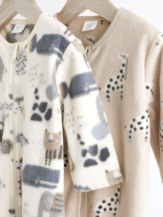 Next Grey Fleece Baby Sleepsuits 2 Pack