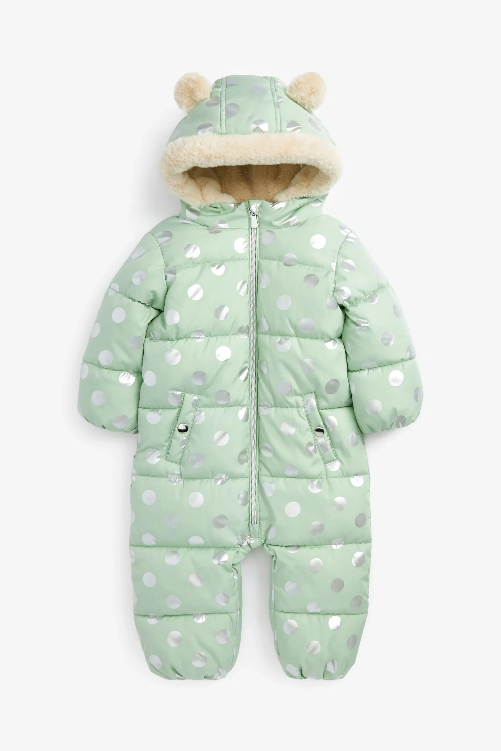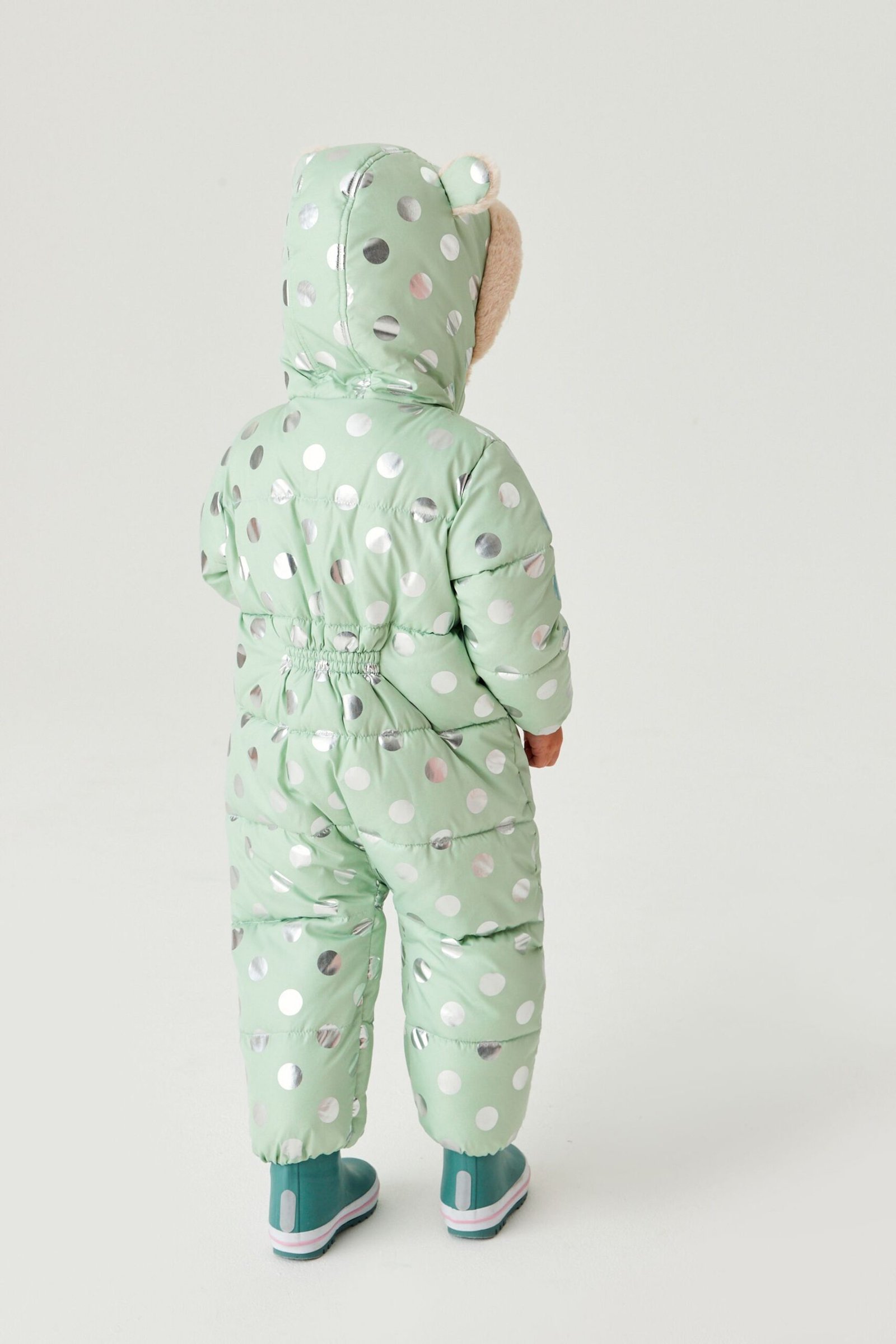 Next – Mint Green Spot Next Shower Resistant Metallic Snowsuit