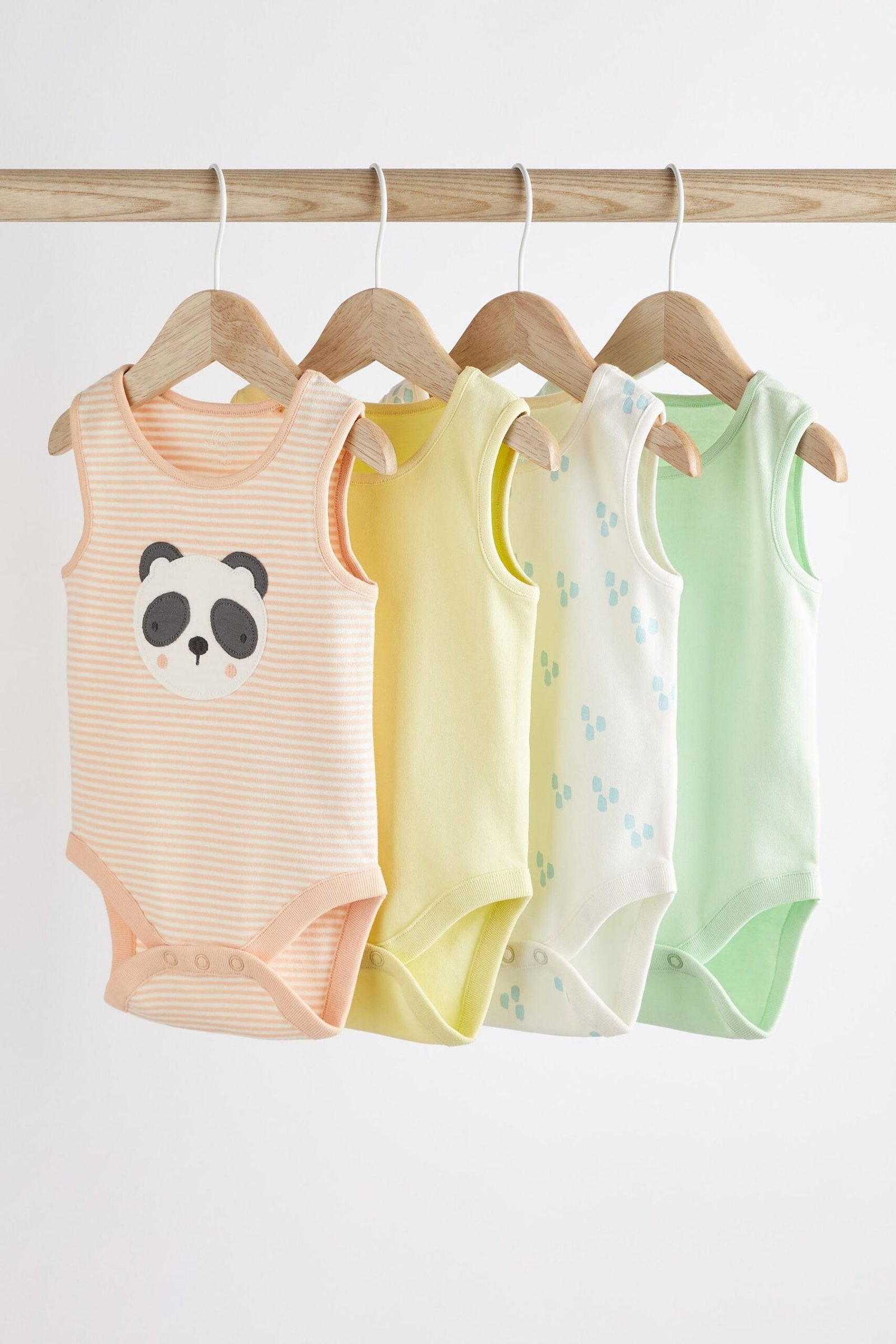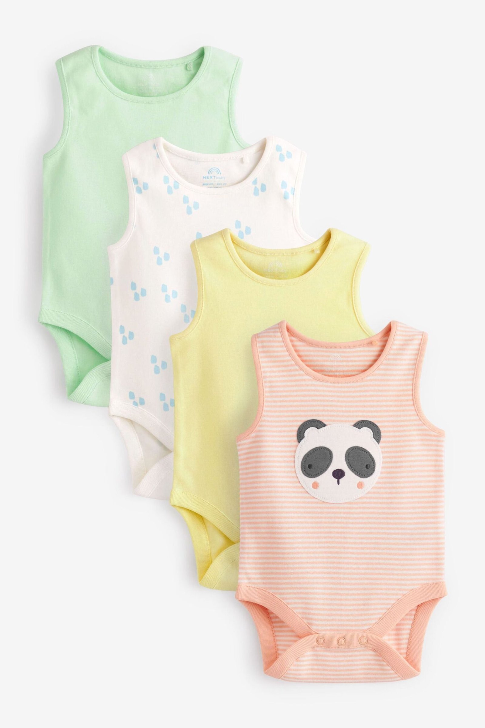 Next – Multi Baby 4 Pack Panda Character Vest Bodysuits