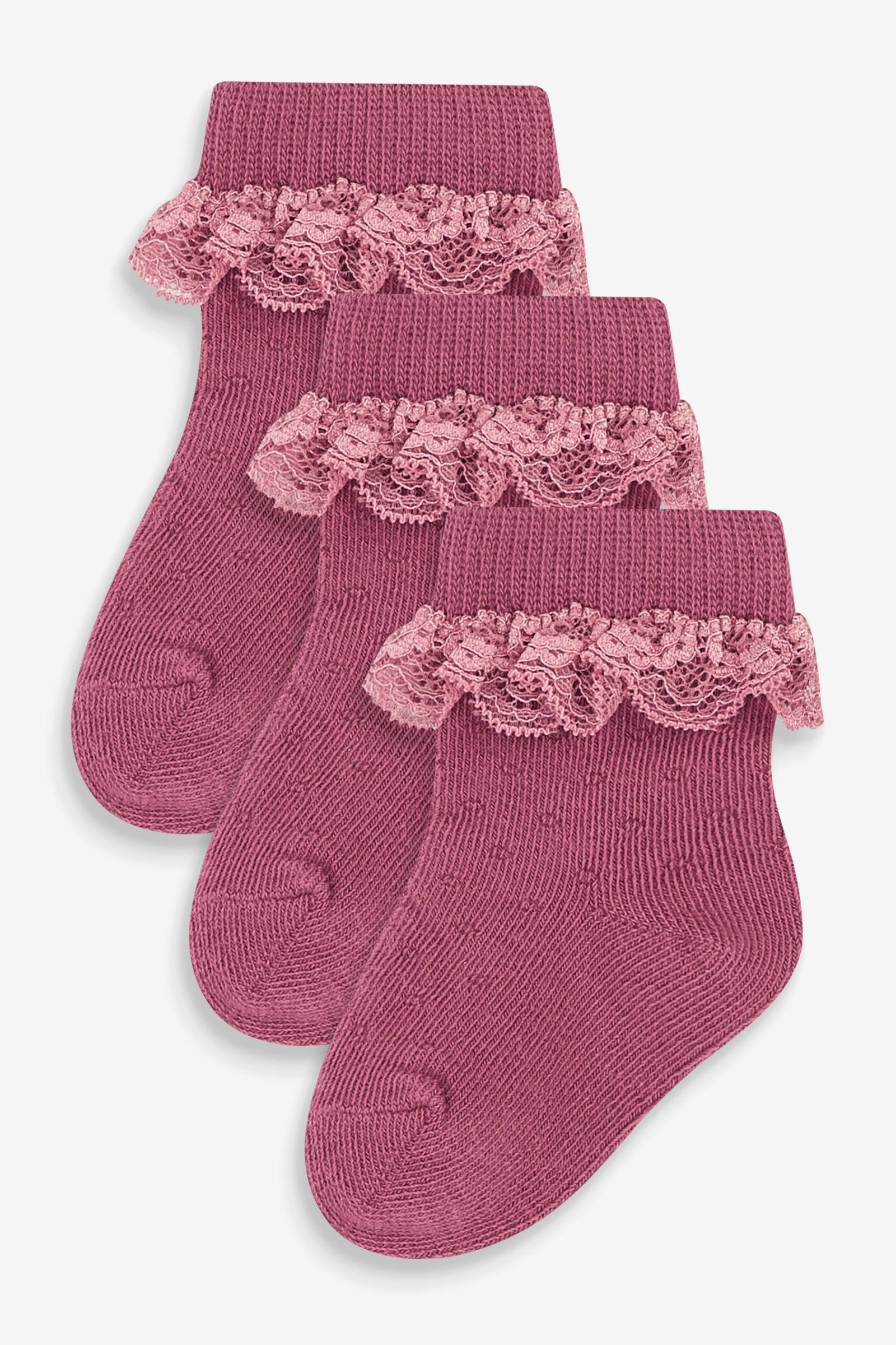 Next – Pink 3 Pack Lace Trim Baby Socks