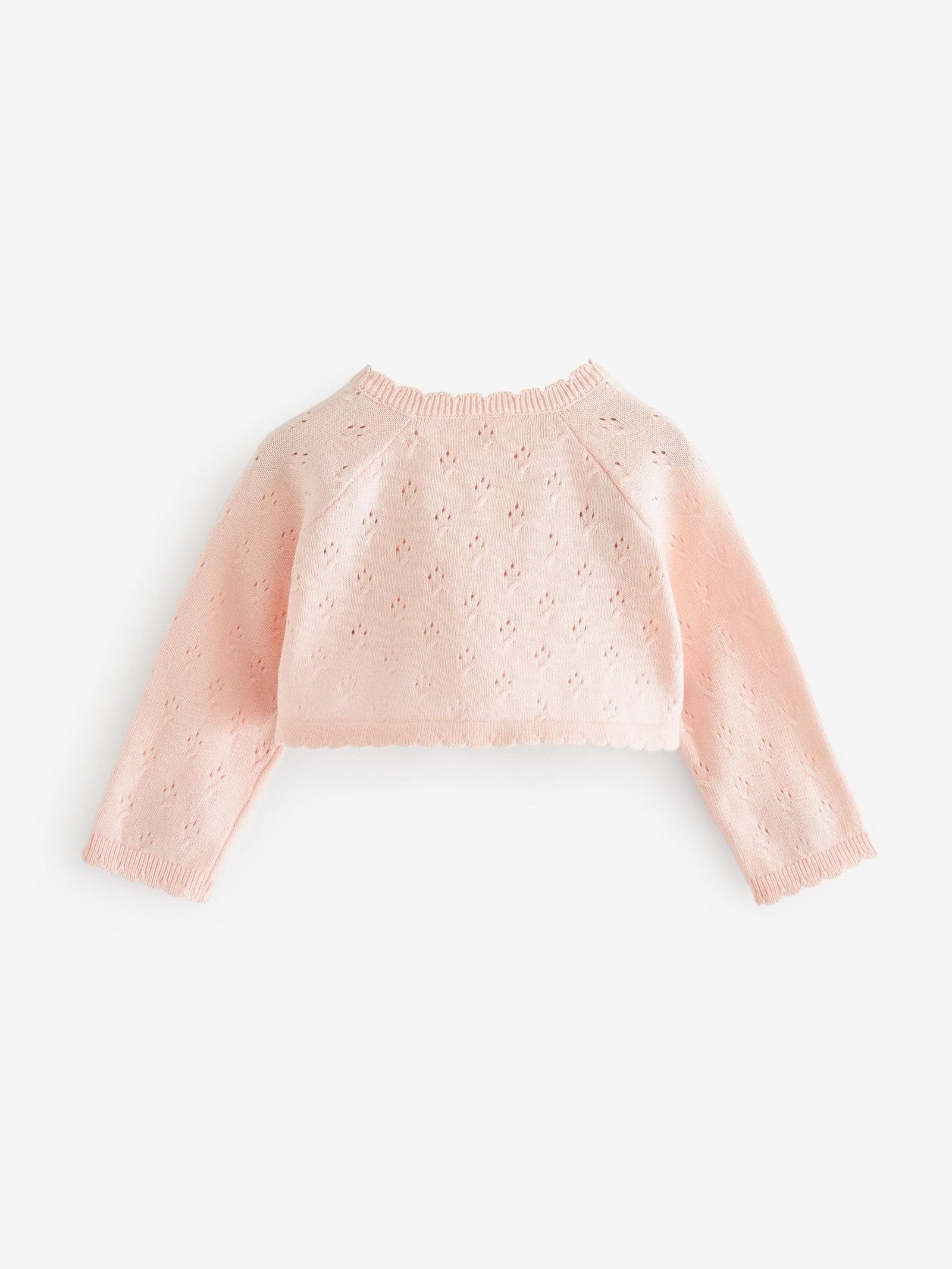 Next – Pink Baby Pointelle Shrug Knitted 100% Cotton Cardigan