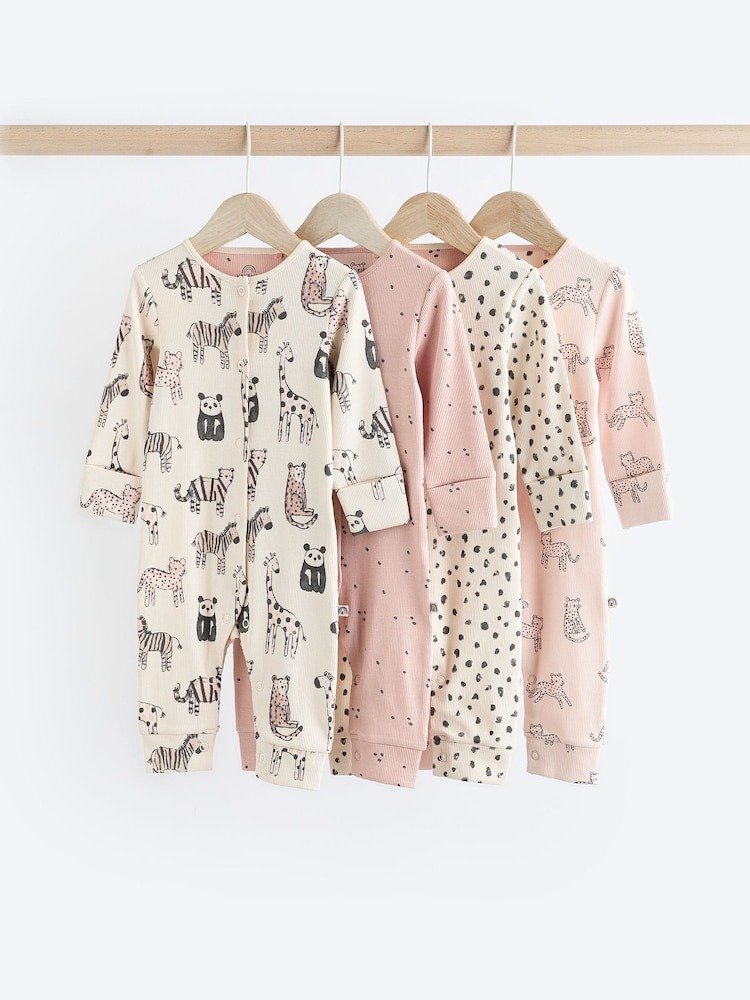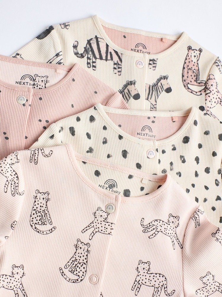 Next Pink Mono 4 Pack Baby Footless Sleepsuits