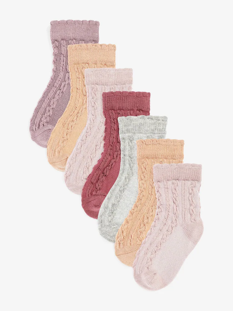 Next Pink/Neutral Baby Cable Socks 7 Pack
