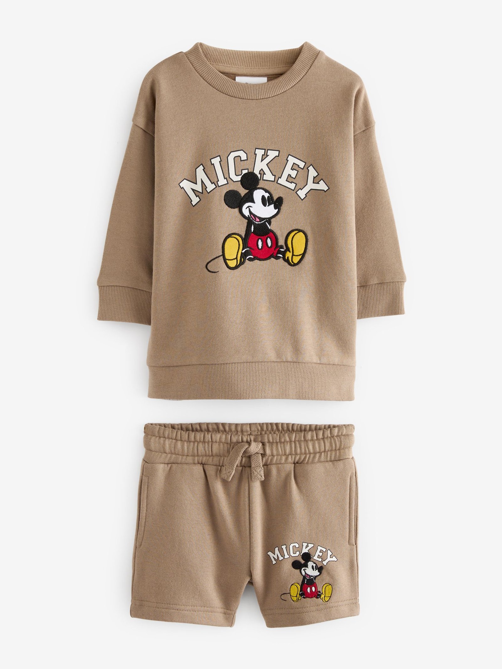 Next – Tan Brown Mickey 100% Cotton Sweatshirt and Shorts Set