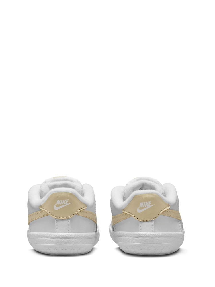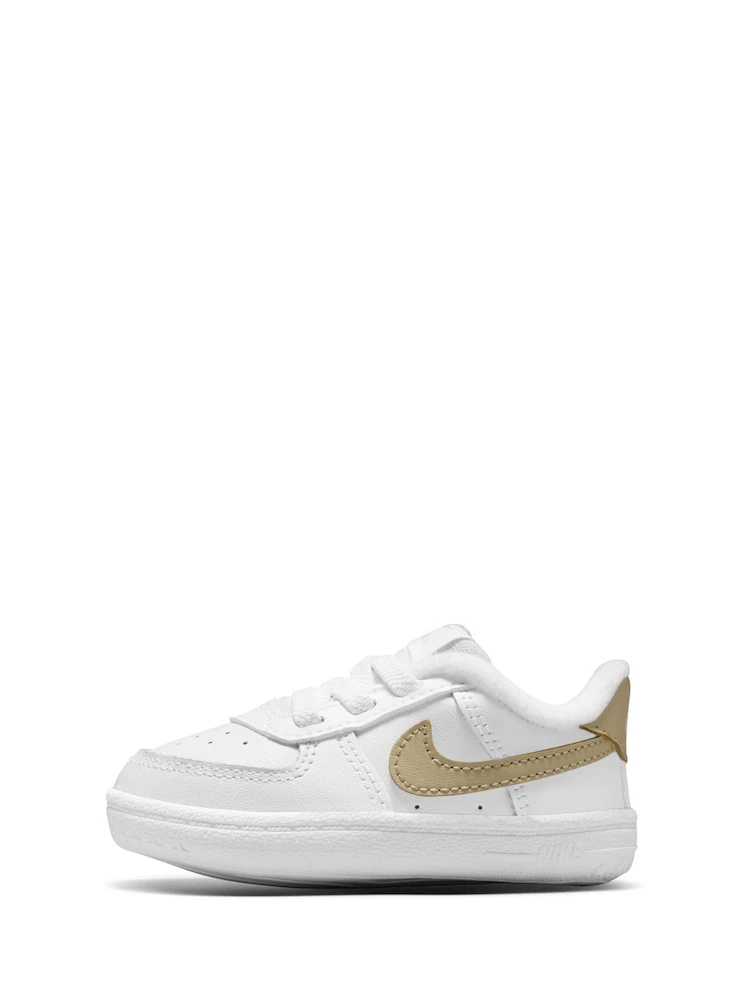 Nike Force 1 Baby Crib Booties There might be no better way to start your little sneakerhead s collection than with these Nike Force 1 booties. We kept the classic leather feel of the AF1 but added elastic laces to make these super easy to take on and off. You ll want to snap all the baby pictures with these kicks on! Leather is durable and easy to clean. Elastic laces make these shoes easy to take on and off. Soft foam cushions little feet for a comfy feel.