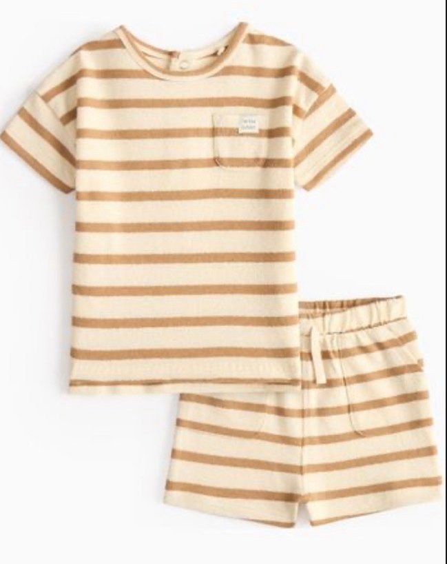 Tu Clothing – Brown Striped Slub T-Shirt & Shorts