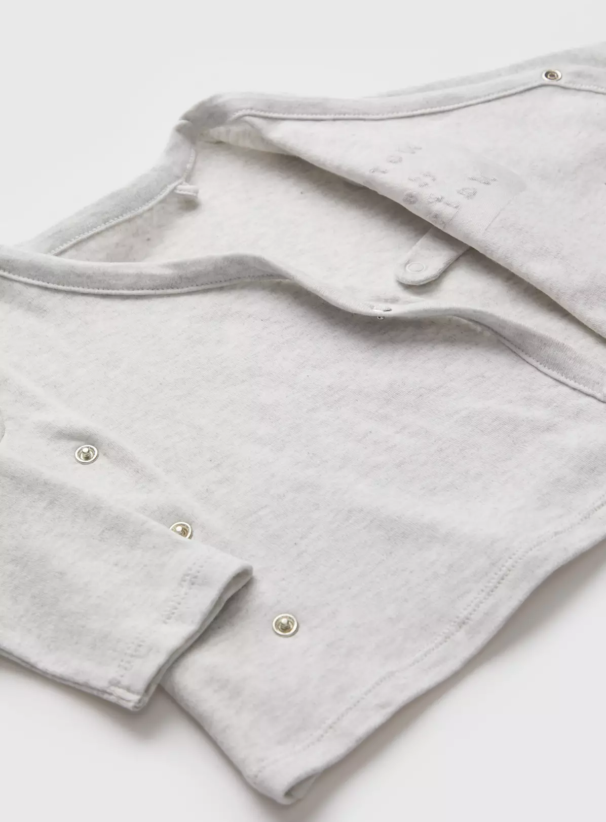 Get your little one ready for sleep time cuddles in this adorable pyjama set. The wrap style top comes in grey marl with a lovely embroidered ‘Worth The Wait!’ design. The bottoms come in sweet sage green with cuffed hems. Oh, so cute!